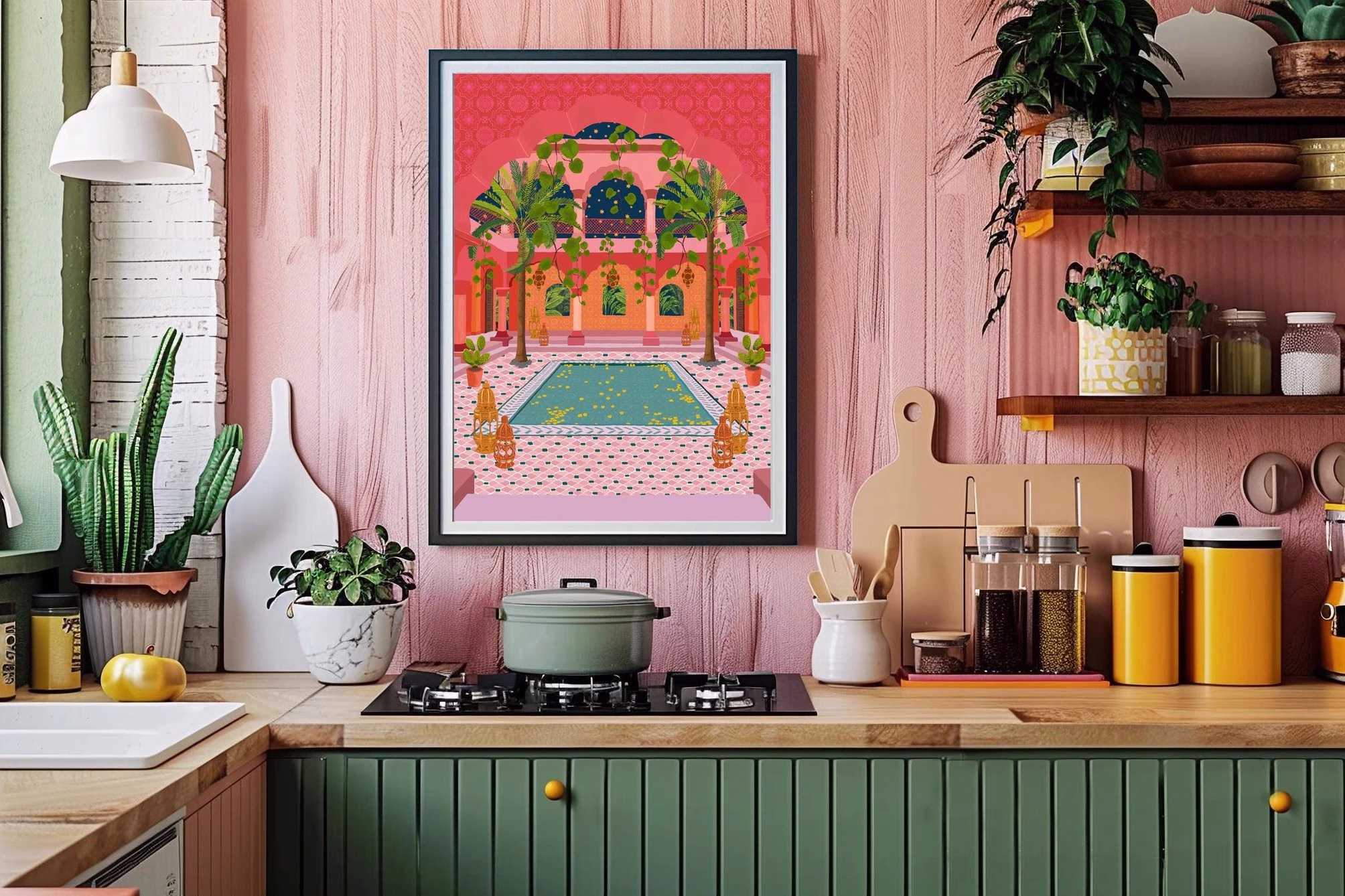 A4 Travel Art Print – Tropical Morocco Riad