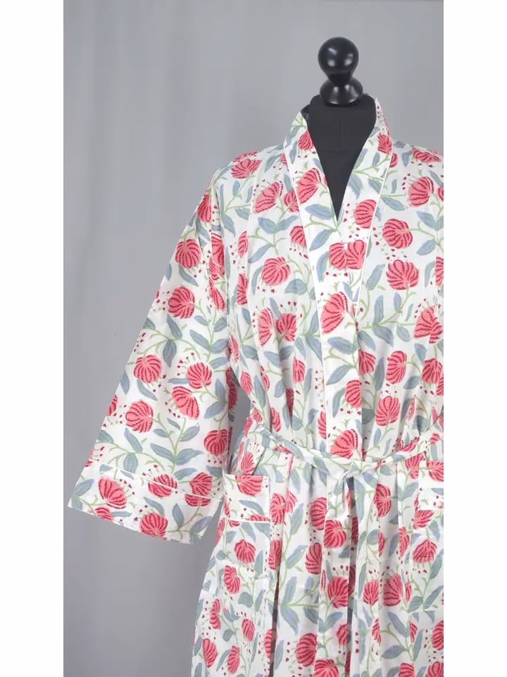 These handmade cotton kimono gowns come in a variety of colours and styles, so that they’ll fit any occasion.