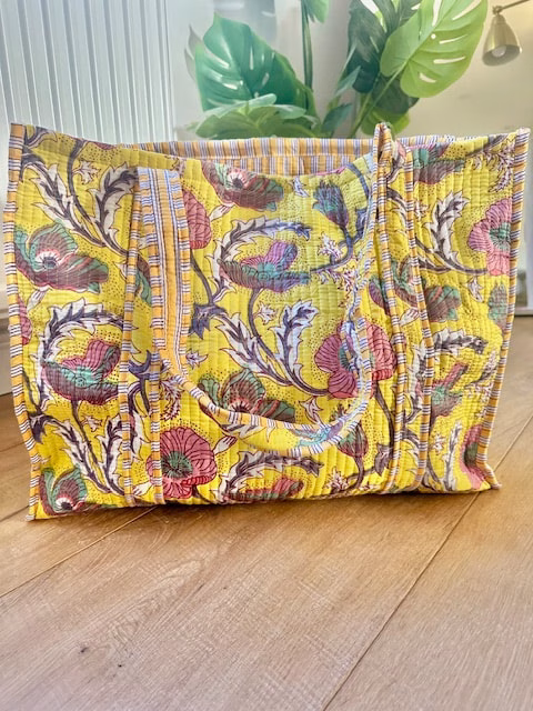 Beautiful cotton quilted tote bag in hand made block yellow floral print.