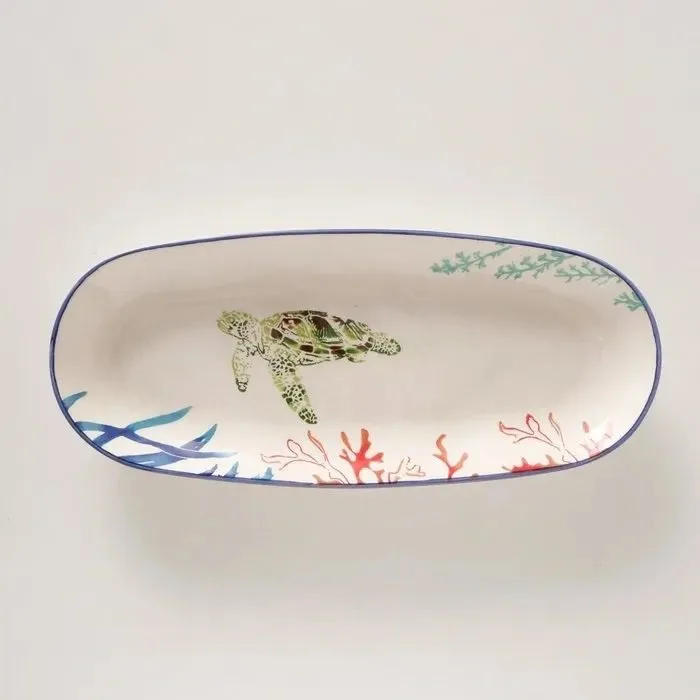 Hand-painted oval ceramic glazed turtle serving platter L35.7 cm x W15. 2 cm x H3. 7 cm Colour: Green,White